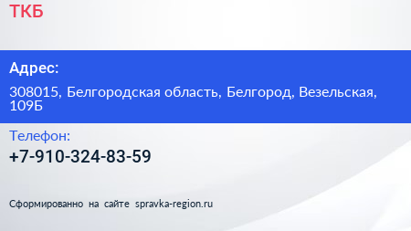 ТКБ по адресу 308015, Белгородская область, Белгород, Везельская, 109Б в дальнейшем Организация, размещена в следующих категориях: