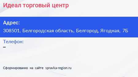 Идеал, торговый центр по адресу 308501, Белгородская область, Белгород, Ягодная, 7Б в дальнейшем Организация, размещена в следующих категориях: