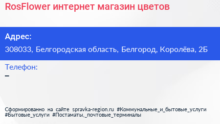 RosFlower, интернет-магазин цветов по адресу 308033, Белгородская область, Белгород, Королёва, 2Б в дальнейшем Организация, размещена в следующих категориях: