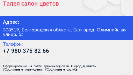 Талея, салон цветов по адресу 308519, Белгородская область, Белгород, Олимпийская улица, 5а в дальнейшем Организация, размещена в следующих категориях: