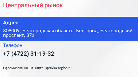 Центральный рынок по адресу 308009, Белгородская область, Белгород, Белгородский проспект, 87а в дальнейшем Организация, размещена в следующих категориях: