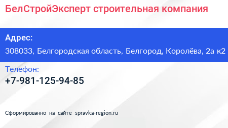 БелСтройЭксперт, строительная компания по адресу 308033, Белгородская область, Белгород, Королёва, 2а к2 в дальнейшем Организация, размещена в следующих категориях:
