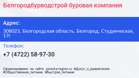 Белгородбурводстрой, буровая компания по адресу 308023, Белгородская область, Белгород, Студенческая, 17г в дальнейшем Организация, размещена в следующих категориях: