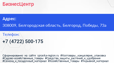БизнесЦентр по адресу 308009, Белгородская область, Белгород, Победы, 73а в дальнейшем Организация, размещена в следующих категориях: