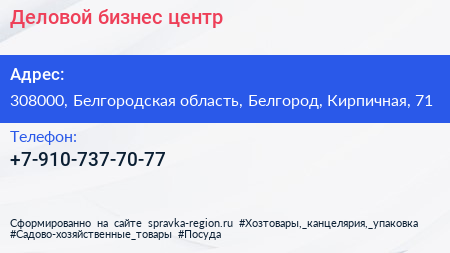 Деловой, бизнес-центр по адресу 308000, Белгородская область, Белгород, Кирпичная, 71 в дальнейшем Организация, размещена в следующих категориях: