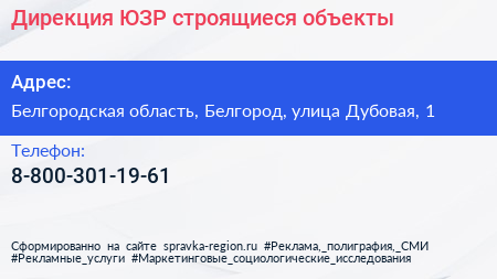 Дирекция ЮЗР, строящиеся объекты по адресу Белгородская область, Белгород, улица Дубовая, 1 в дальнейшем Организация, размещена в следующих категориях: