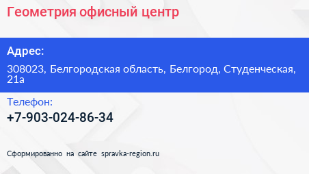Геометрия, офисный центр по адресу 308023, Белгородская область, Белгород, Студенческая, 21а в дальнейшем Организация, размещена в следующих категориях: