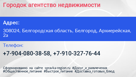 Городок, агентство недвижимости по адресу 308024, Белгородская область, Белгород, Архиерейская, 2а в дальнейшем Организация, размещена в следующих категориях: