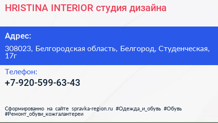 HRISTINA INTERIOR, студия дизайна по адресу 308023, Белгородская область, Белгород, Студенческая, 17г в дальнейшем Организация, размещена в следующих категориях: