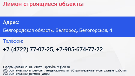 Лимон, строящиеся объекты по адресу Белгородская область, Белгород, Белогорская, 4 в дальнейшем Организация, размещена в следующих категориях: