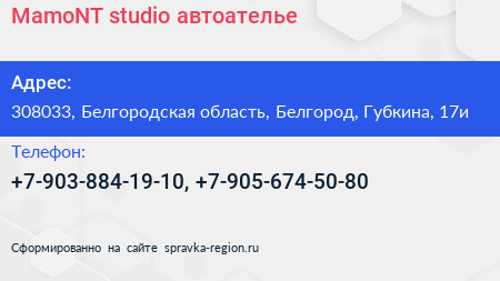 MamoNT-studio, автоателье по адресу 308033, Белгородская область, Белгород, Губкина, 17и в дальнейшем Организация, размещена в следующих категориях: