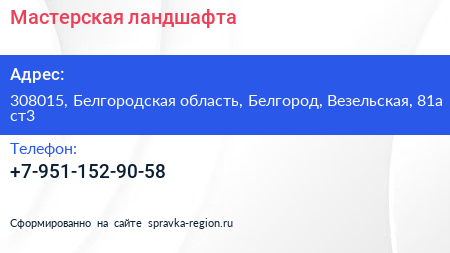 Мастерская ландшафта по адресу 308015, Белгородская область, Белгород, Везельская, 81а ст3 в дальнейшем Организация, размещена в следующих категориях: