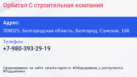 Орбитал-С, строительная компания по адресу 308025, Белгородская область, Белгород, Сумская, 168 в дальнейшем Организация, размещена в следующих категориях: