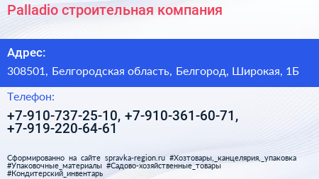 Palladio, строительная компания по адресу 308501, Белгородская область, Белгород, Широкая, 1Б в дальнейшем Организация, размещена в следующих категориях: