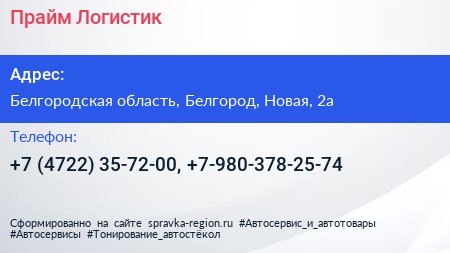 Прайм-Логистик по адресу Белгородская область, Белгород, Новая, 2а в дальнейшем Организация, размещена в следующих категориях: