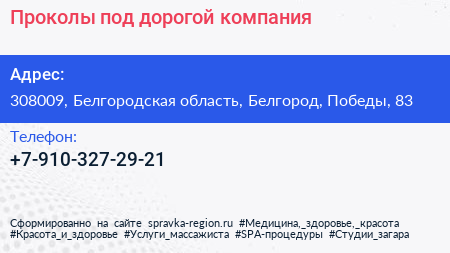 Проколы под дорогой, компания по адресу 308009, Белгородская область, Белгород, Победы, 83 в дальнейшем Организация, размещена в следующих категориях: