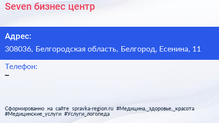 Seven, бизнес-центр по адресу 308036, Белгородская область, Белгород, Есенина, 11 в дальнейшем Организация, размещена в следующих категориях: