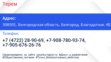 Терем по адресу 308501, Белгородская область, Белгород, Благодатная, 4Б в дальнейшем Организация, размещена в следующих категориях: