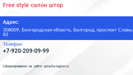 Free style, салон штор по адресу 308009, Белгородская область, Белгород, проспект Славы, 82 в дальнейшем Организация, размещена в следующих категориях: