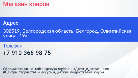 Магазин ковров по адресу 308519, Белгородская область, Белгород, Олимпийская улица, 19а в дальнейшем Организация, размещена в следующих категориях: