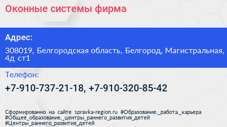 Оконные системы, фирма по адресу 308019, Белгородская область, Белгород, Магистральная, 4д ст1 в дальнейшем Организация, размещена в следующих категориях: