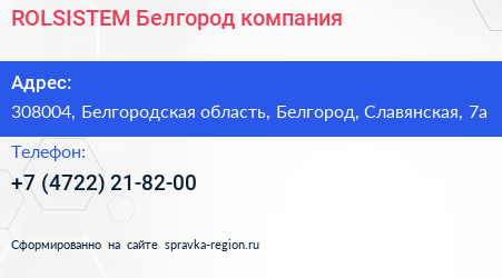 ROLSISTEM Белгород, компания по адресу 308004, Белгородская область, Белгород, Славянская, 7а в дальнейшем Организация, размещена в следующих категориях: