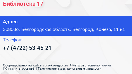 Библиотека №17 по адресу 308036, Белгородская область, Белгород, Конева, 11 к1 в дальнейшем Организация, размещена в следующих категориях: