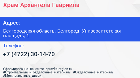 Храм Архангела Гавриила по адресу Белгородская область, Белгород, Университетская площадь, 1 в дальнейшем Организация, размещена в следующих категориях:
