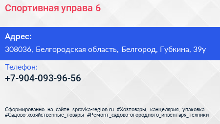Спортивная, управа №6 по адресу 308036, Белгородская область, Белгород, Губкина, 39у в дальнейшем Организация, размещена в следующих категориях: