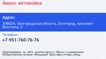 Амакs, автомойка по адресу 308024, Белгородская область, Белгород, проспект Ватутина, 2 в дальнейшем Организация, размещена в следующих категориях: