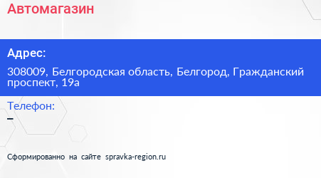 Автомагазин по адресу 308009, Белгородская область, Белгород, Гражданский проспект, 19а в дальнейшем Организация, размещена в следующих категориях: