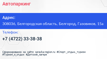 Автопаркинг по адресу 308036, Белгородская область, Белгород, Газовиков, 15а в дальнейшем Организация, размещена в следующих категориях: