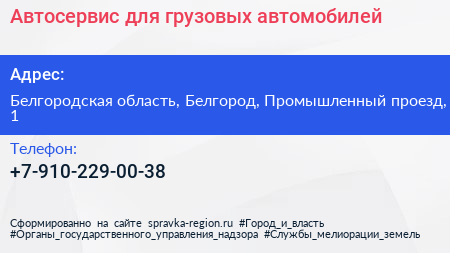 Автосервис для грузовых автомобилей по адресу Белгородская область, Белгород, Промышленный проезд, 1 в дальнейшем Организация, размещена в следующих категориях: