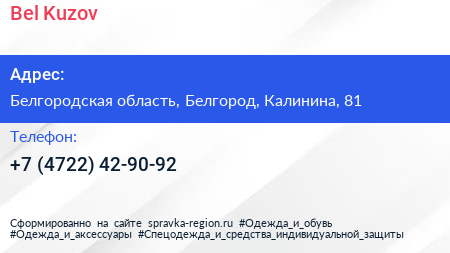 Bel-Kuzov по адресу Белгородская область, Белгород, Калинина, 81 в дальнейшем Организация, размещена в следующих категориях: