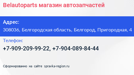 Belautoparts, магазин автозапчастей по адресу 308036, Белгородская область, Белгород, Пригородная, 4 в дальнейшем Организация, размещена в следующих категориях: