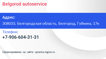 Belgorod-autoservice по адресу 308033, Белгородская область, Белгород, Губкина, 17к в дальнейшем Организация, размещена в следующих категориях: