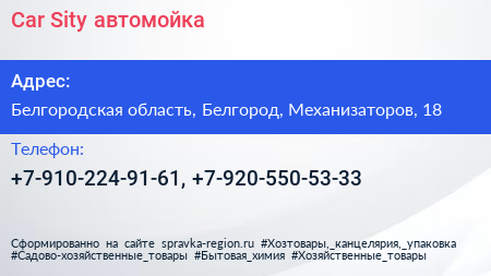 Car Sity, автомойка по адресу Белгородская область, Белгород, Механизаторов, 18 в дальнейшем Организация, размещена в следующих категориях: