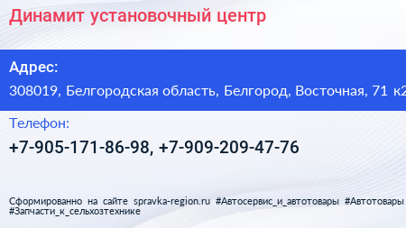 Динамит, установочный центр по адресу 308019, Белгородская область, Белгород, Восточная, 71 к2 в дальнейшем Организация, размещена в следующих категориях: