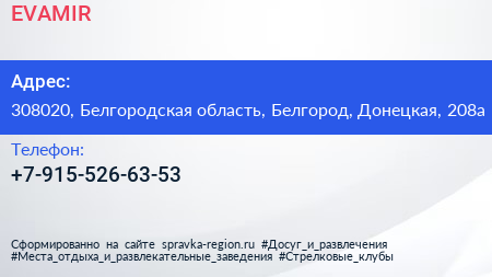 EVAMIR по адресу 308020, Белгородская область, Белгород, Донецкая, 208а в дальнейшем Организация, размещена в следующих категориях: