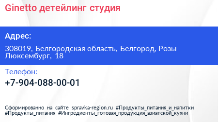 Ginetto, детейлинг-студия по адресу 308019, Белгородская область, Белгород, Розы Люксембург, 18 в дальнейшем Организация, размещена в следующих категориях: