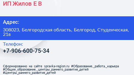 ИП Жилов Е.В. по адресу 308023, Белгородская область, Белгород, Студенческая, 21в в дальнейшем Организация, размещена в следующих категориях: