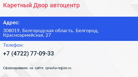 Каретный Двор, автоцентр по адресу 308019, Белгородская область, Белгород, Красноармейская, 27 в дальнейшем Организация, размещена в следующих категориях: