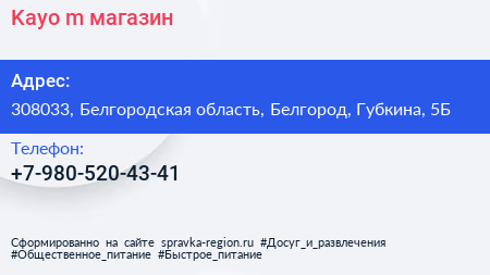 Kayo-m, магазин по адресу 308033, Белгородская область, Белгород, Губкина, 5Б в дальнейшем Организация, размещена в следующих категориях: