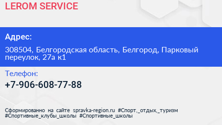 LEROM-SERVICE по адресу 308504, Белгородская область, Белгород, Парковый переулок, 27а к1 в дальнейшем Организация, размещена в следующих категориях: