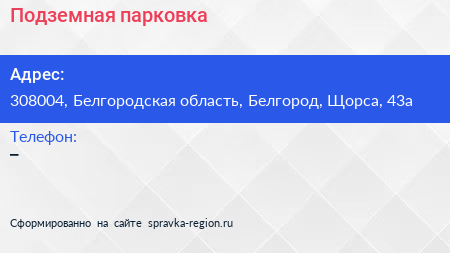 Подземная парковка по адресу 308004, Белгородская область, Белгород, Щорса, 43а в дальнейшем Организация, размещена в следующих категориях: