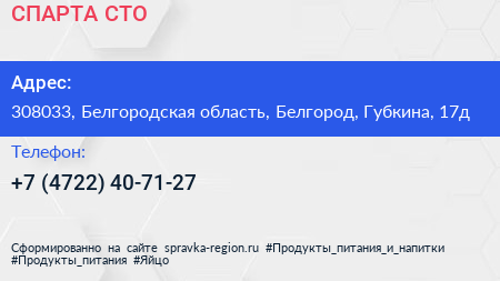 СПАРТА, СТО по адресу 308033, Белгородская область, Белгород, Губкина, 17д в дальнейшем Организация, размещена в следующих категориях: