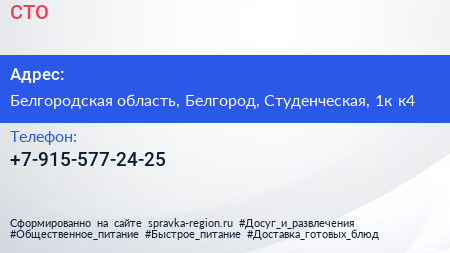 СТО по адресу Белгородская область, Белгород, Студенческая, 1к к4 в дальнейшем Организация, размещена в следующих категориях: