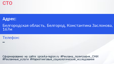СТО по адресу Белгородская область, Белгород, Константина Заслонова, 167м в дальнейшем Организация, размещена в следующих категориях:
