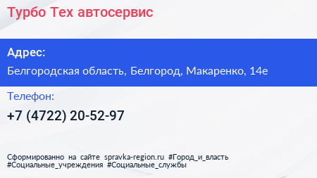 Турбо-Тех, автосервис по адресу Белгородская область, Белгород, Макаренко, 14е в дальнейшем Организация, размещена в следующих категориях:
