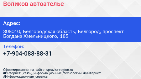 Воликов, автоателье по адресу 308010, Белгородская область, Белгород, проспект Богдана Хмельницкого, 185 в дальнейшем Организация, размещена в следующих категориях: